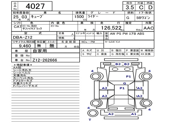 NISSAN CUBE 2013 г., лот № 4027