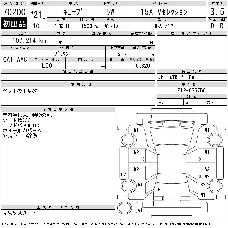 NISSAN CUBE 2009 г., лот № 70200