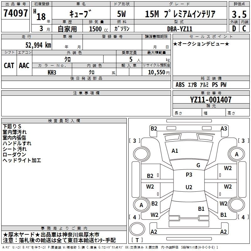 NISSAN CUBE 2006 г., лот № 74097