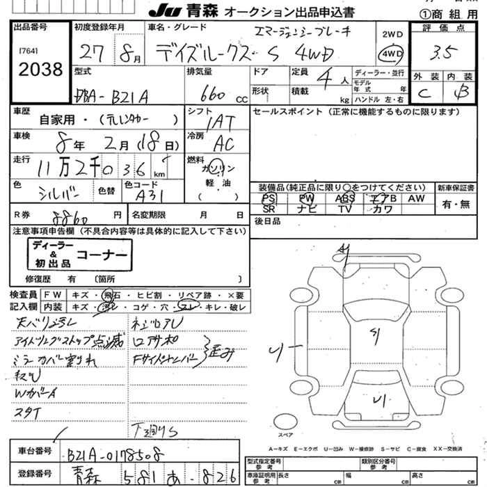 Год выпуска2015 Пробег 112 000 км КузовB21A Комплектация4WD SEMA-JENSI- BRAKE