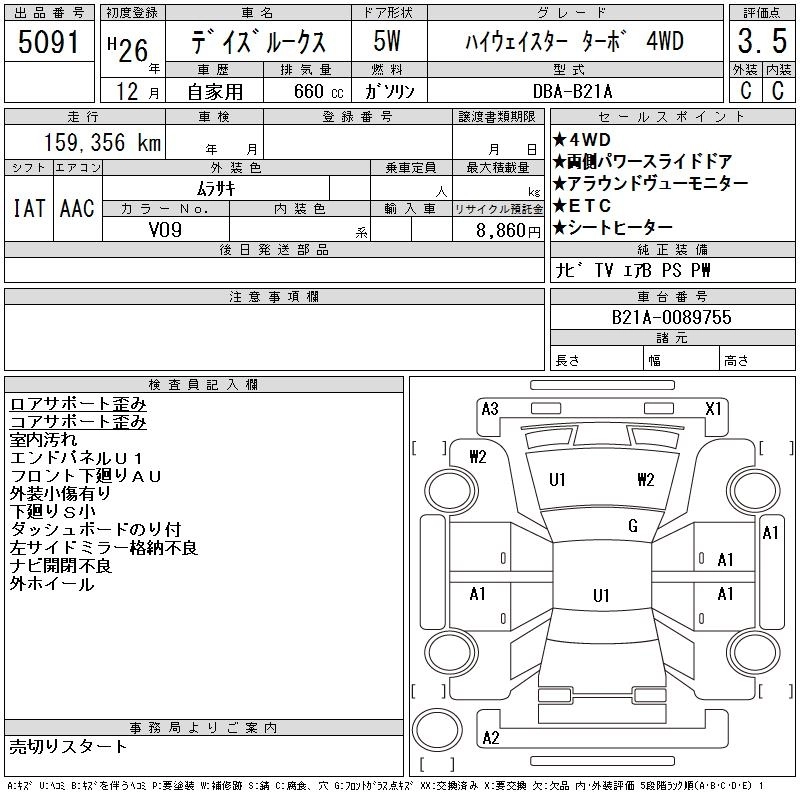 NISSAN DAYZ ROOX 2014 г., лот № 5091