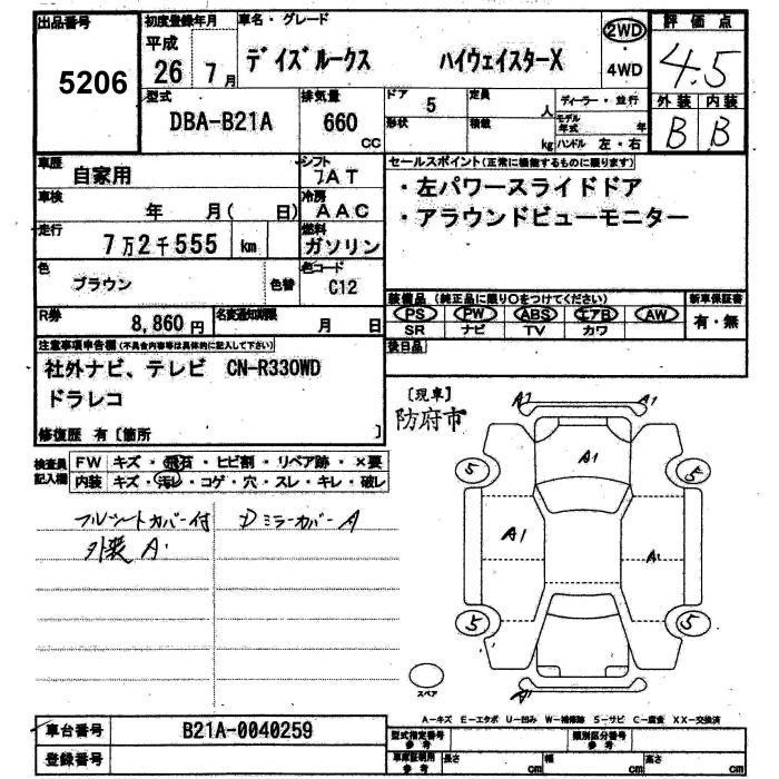 NISSAN DAYZ ROOX 2014 г., лот № 5206