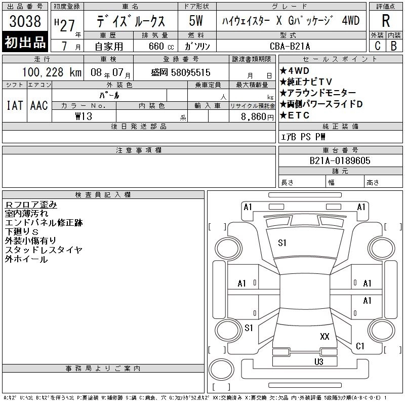 NISSAN DAYZ ROOX 2015 г., лот № 3038