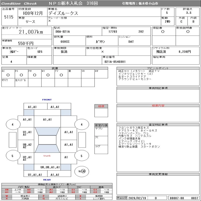Статус выставлен на аукцион Лот 5115 Аукцион NPS Tochigi Дата аукциона 10.03.2026