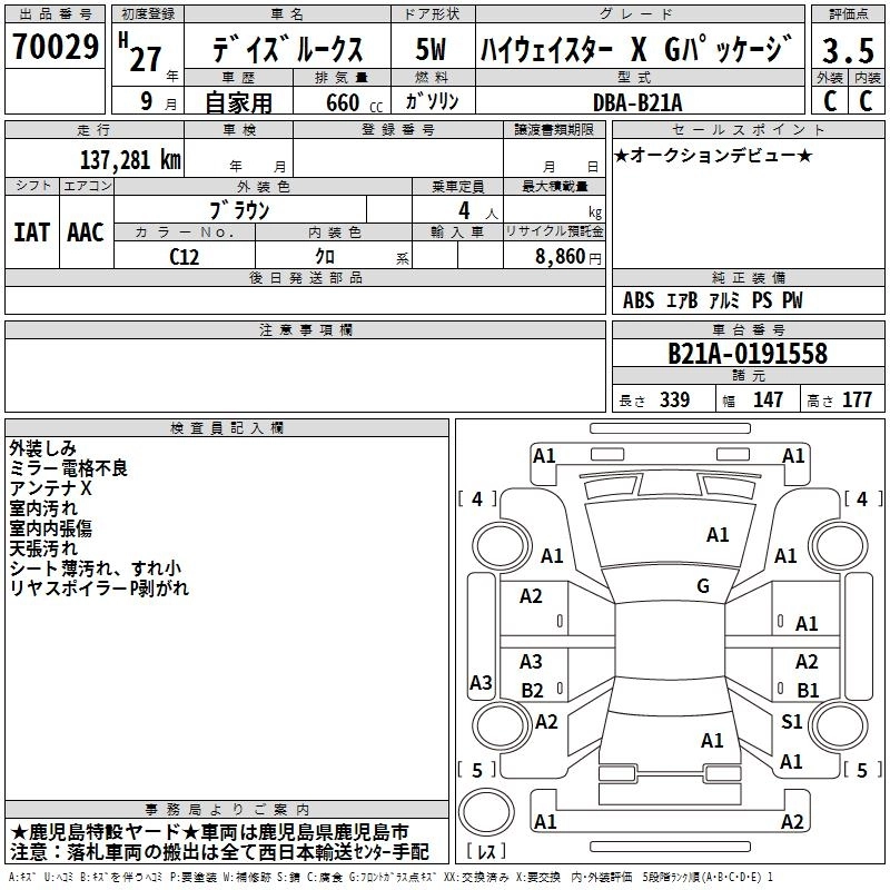 NISSAN DAYZ ROOX 2015 г., лот № 70029