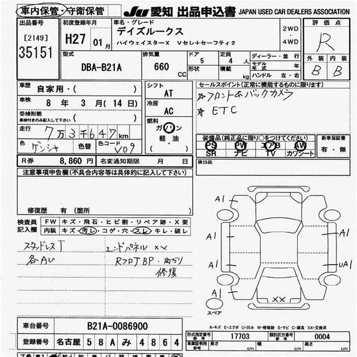 NISSAN DAYZ ROOX 2015 г., лот № 35151
