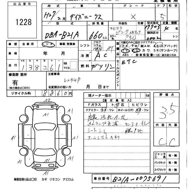 NISSAN DAYZ ROOX 2015 г., лот № 1228