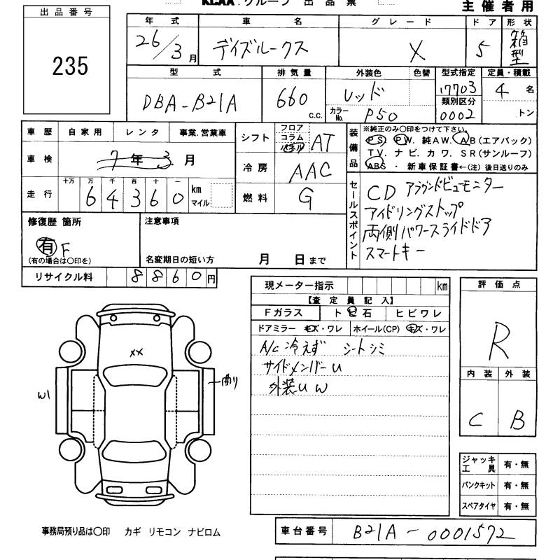 NISSAN DAYZ ROOX 2014 г., лот № 235