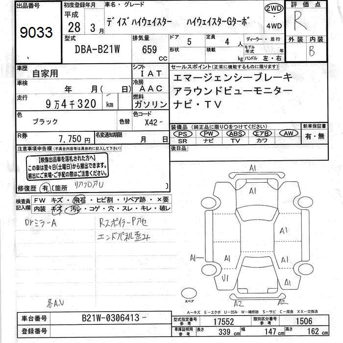 NISSAN DAYZ 2016 г., лот № 9033