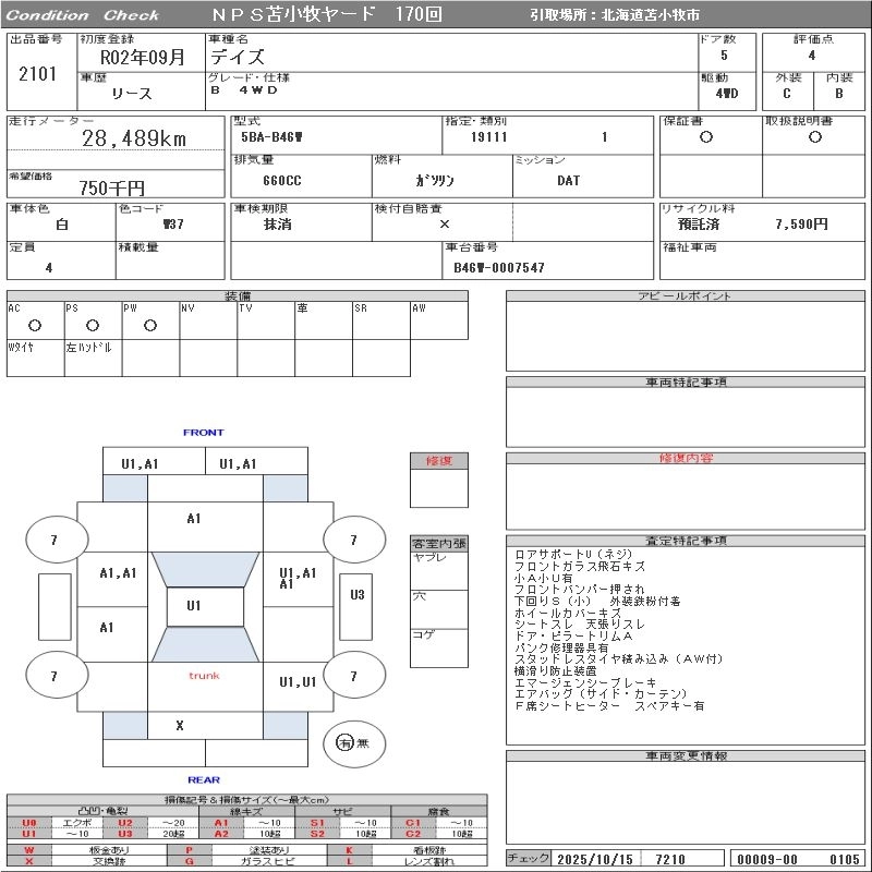Статус выставлен на аукцион Лот 2101 Аукцион NPS Tomakomai Дата аукциона 28.10.2025