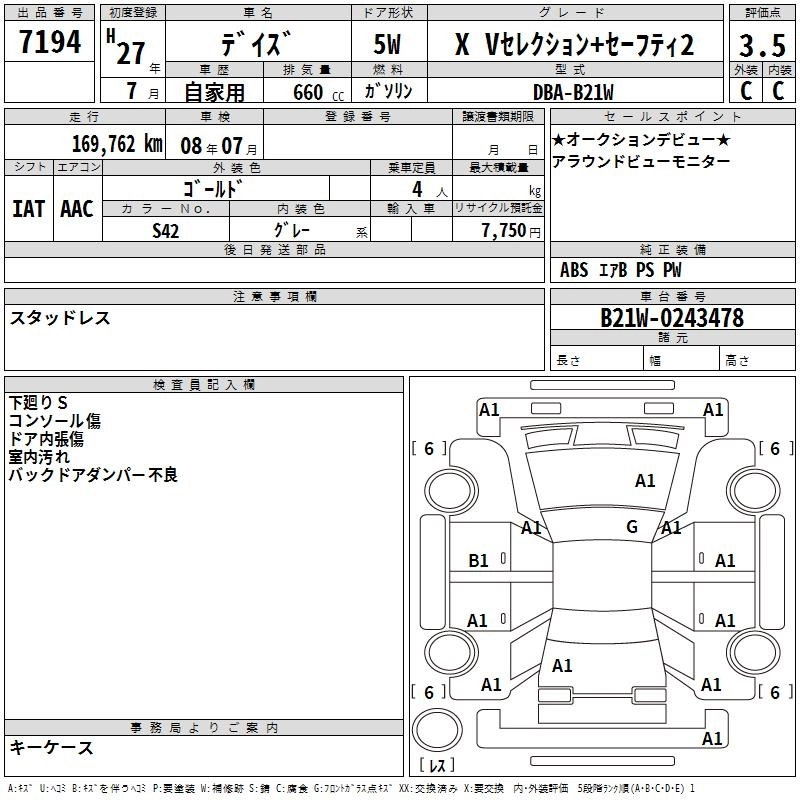 Год выпуска2015 Пробег 170 000 км КузовB21W КомплектацияX V SELECTION + SAFETY 2