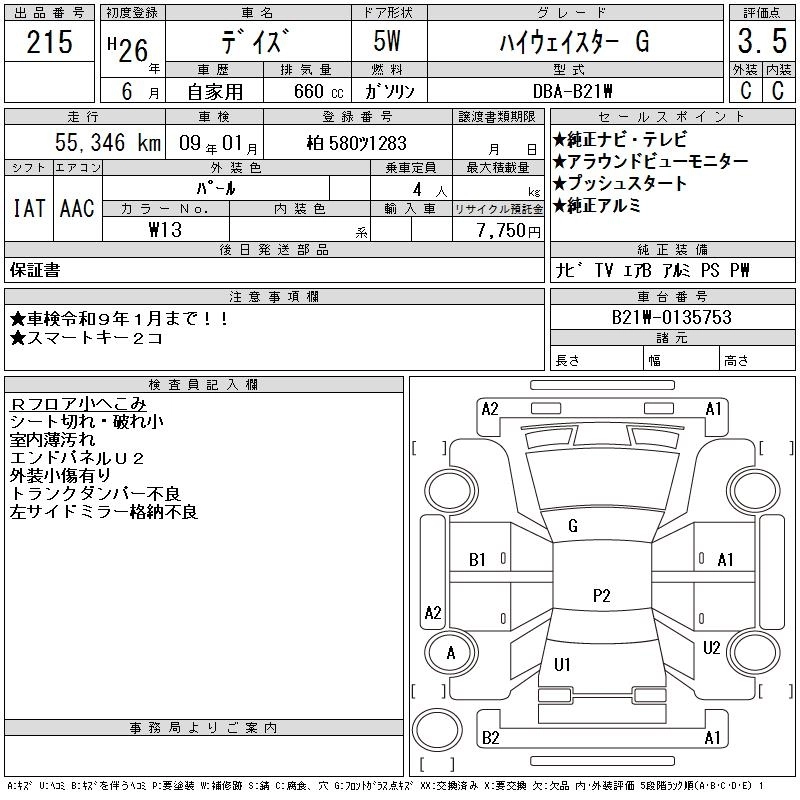 Год выпуска2014 Пробег 55 000 км КузовB21W Комплектация HIGHWAY STAR G