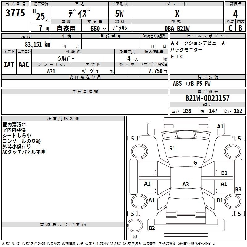 NISSAN DAYZ 2013 г., лот № 3775