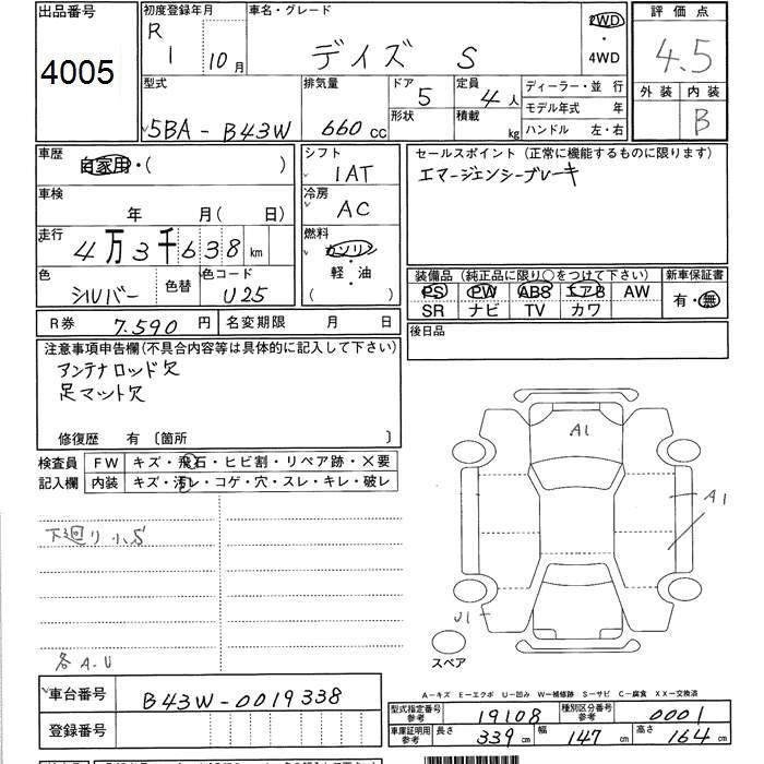 NISSAN DAYZ 2019 г., лот № 4005