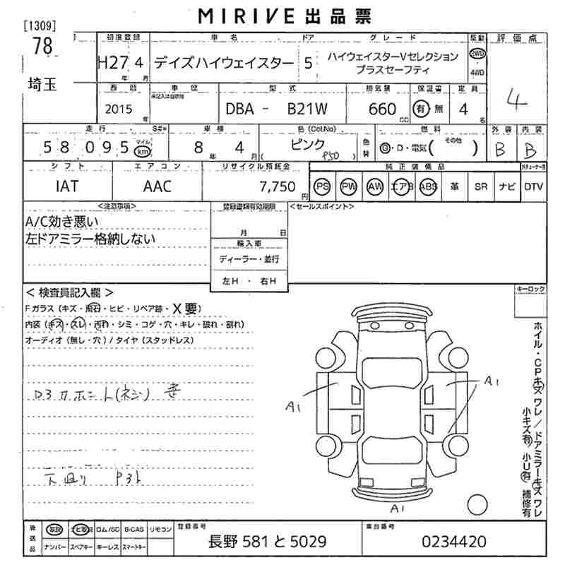 NISSAN DAYZ 2015 г., лот № 78