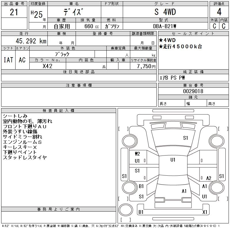 Год выпуска2013 Пробег 45 000 км КузовB21W КомплектацияS 4WD