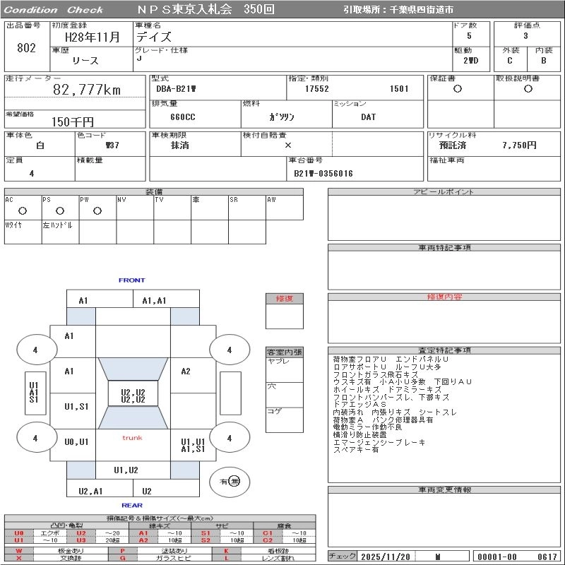 NISSAN DAYZ 2016 г., лот № 802