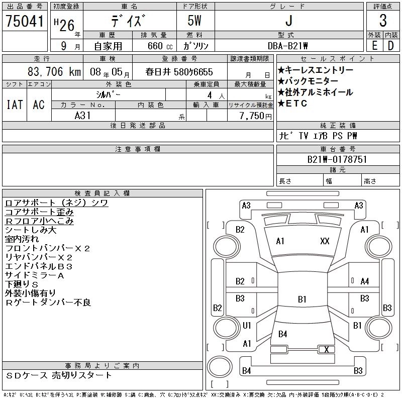 NISSAN DAYZ 2014 г., лот № 75041