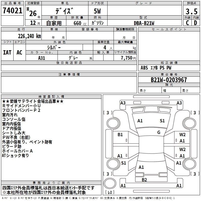 NISSAN DAYZ 2014 г., лот № 74021