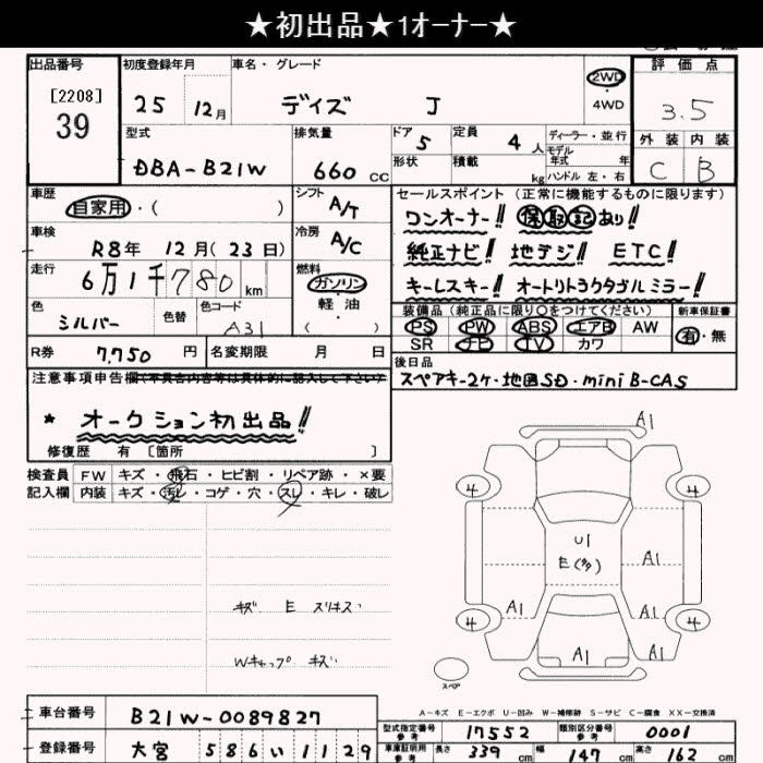 NISSAN DAYZ 2013 г., лот № 39