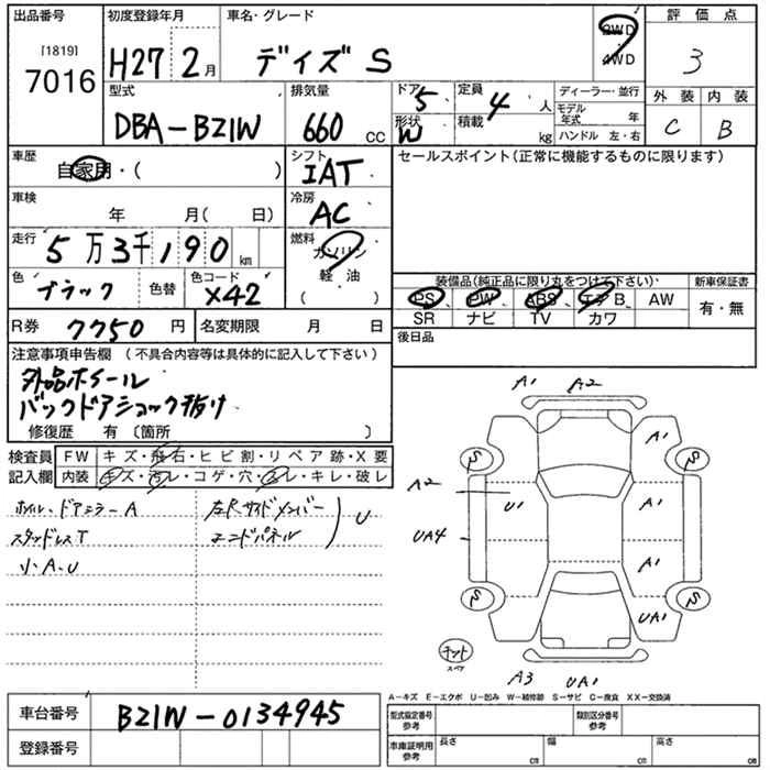 NISSAN DAYZ 2015 г., лот № 7016