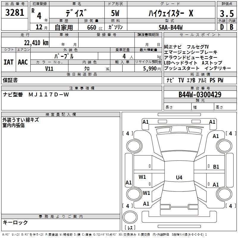 NISSAN DAYZ 2022 г., лот № 3281