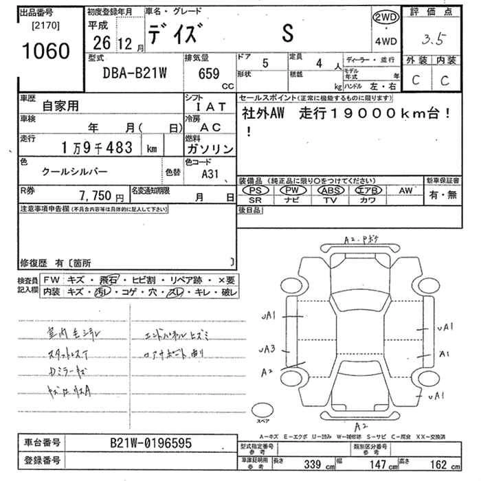 NISSAN DAYZ 2014 г., лот № 1060