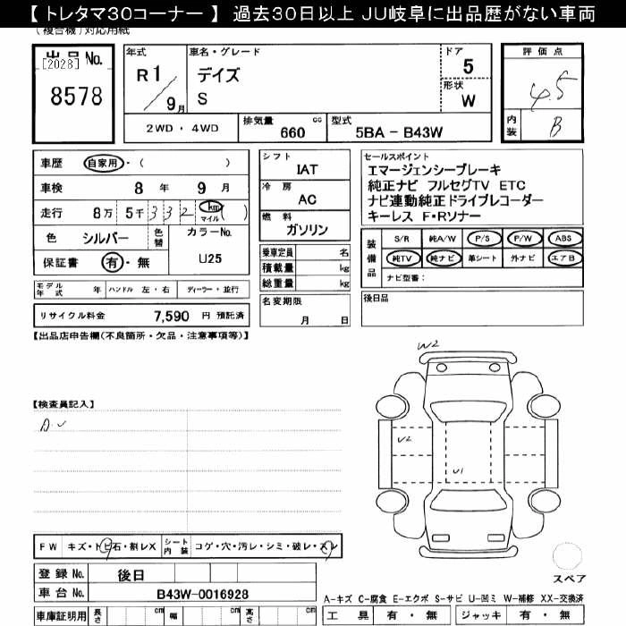 NISSAN DAYZ 2019 г., лот № 8578