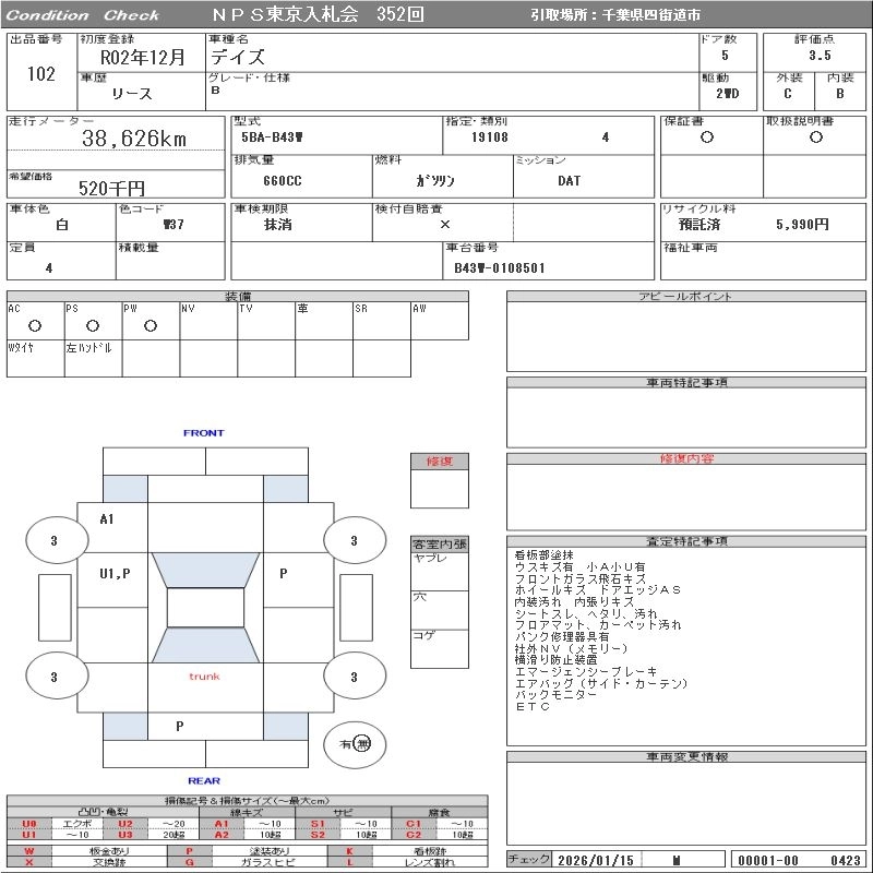 NISSAN DAYZ 2020 г., лот № 102