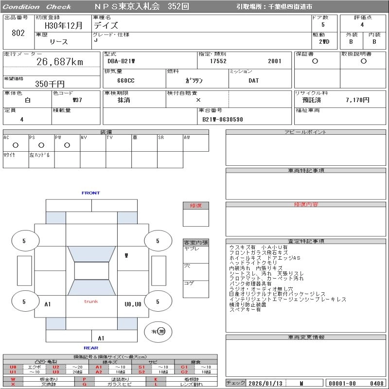 NISSAN DAYZ 2018 г., лот № 802