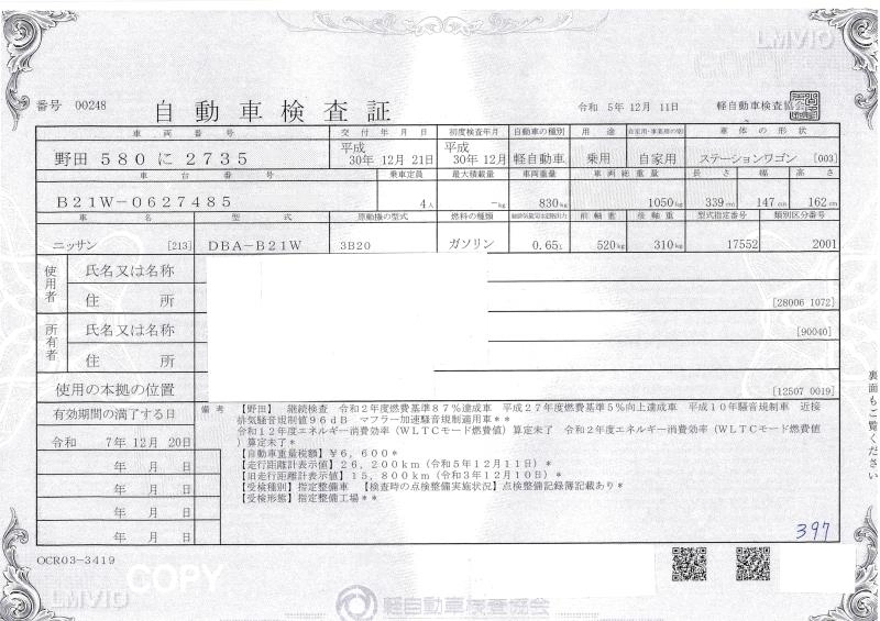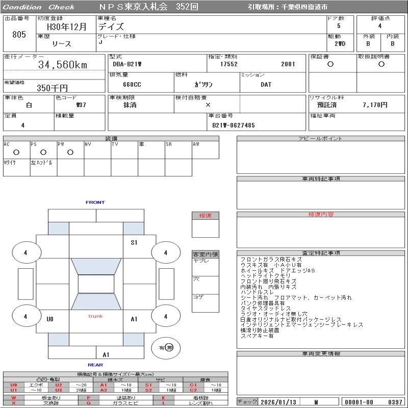NISSAN DAYZ 2018 г., лот № 805