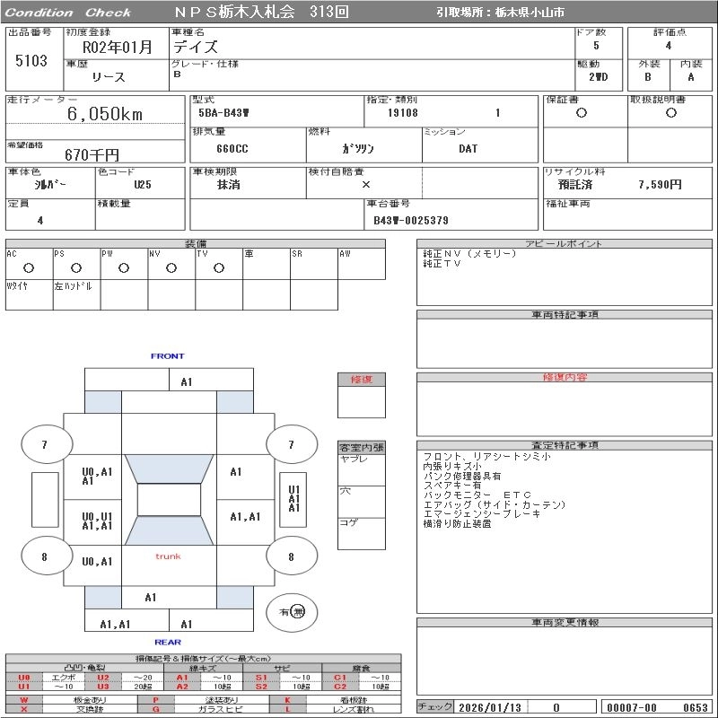 Статус выставлен на аукцион Лот 5103 Аукцион NPS Tochigi Дата аукциона 27.01.2026