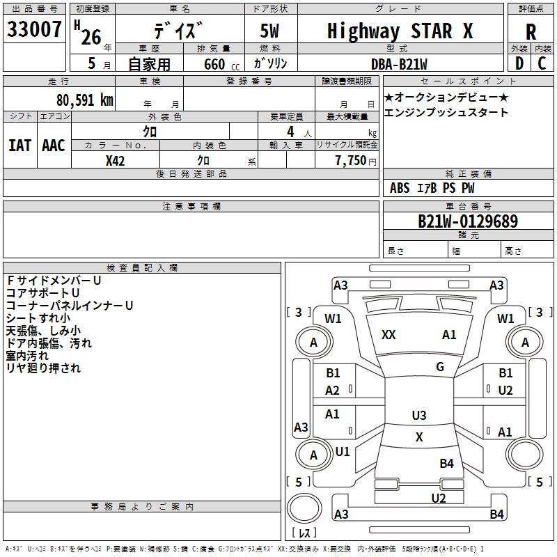 NISSAN DAYZ 2014 г., лот № 33007