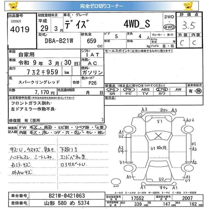 NISSAN DAYZ 2017 г., лот № 4019