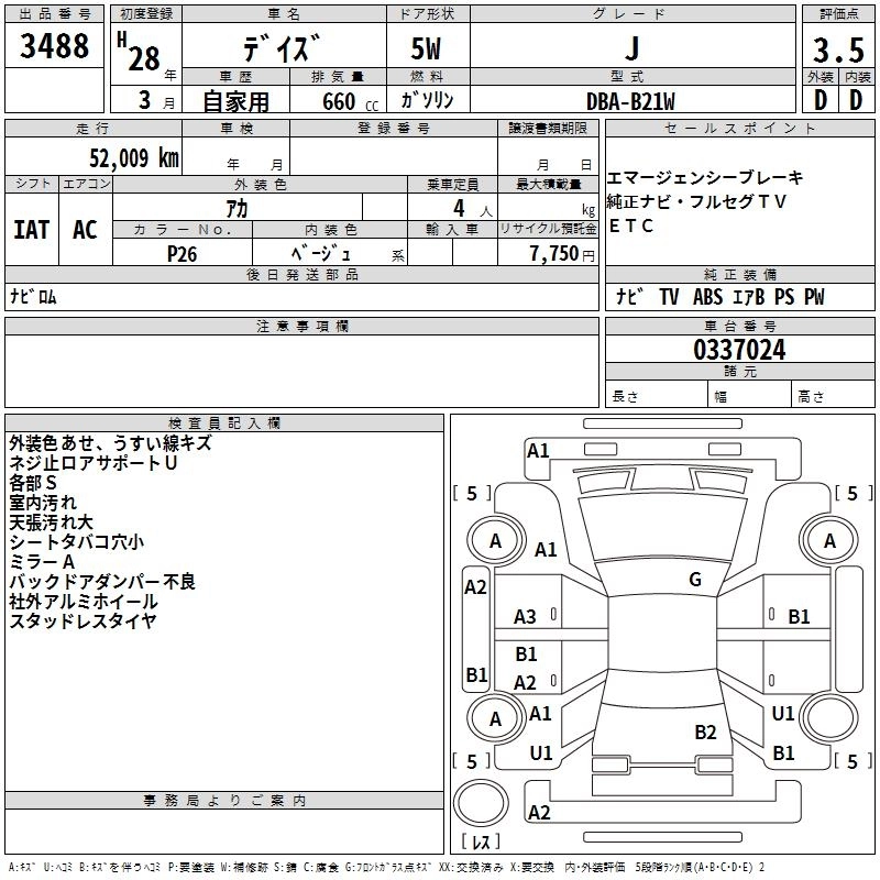 NISSAN DAYZ 2016 г., лот № 3488