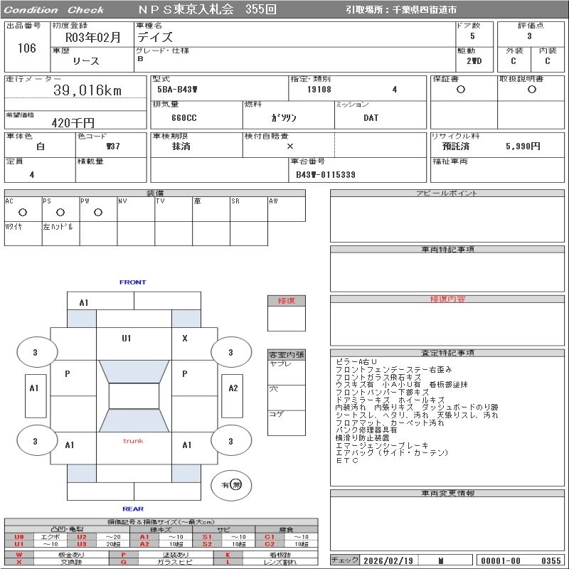 NISSAN DAYZ 2021 г., лот № 106