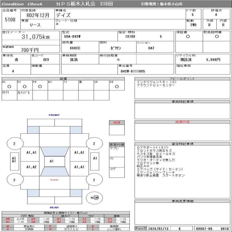 Статус выставлен на аукцион Лот 5108 Аукцион NPS Tochigi Дата аукциона 10.03.2026