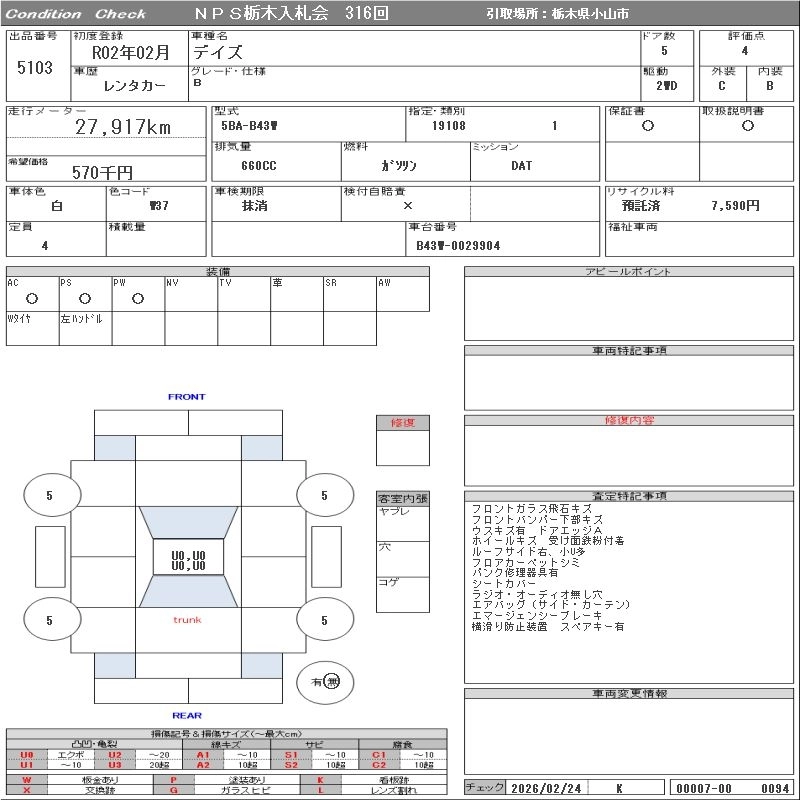 Статус выставлен на аукцион Лот 5103 Аукцион NPS Tochigi Дата аукциона 10.03.2026