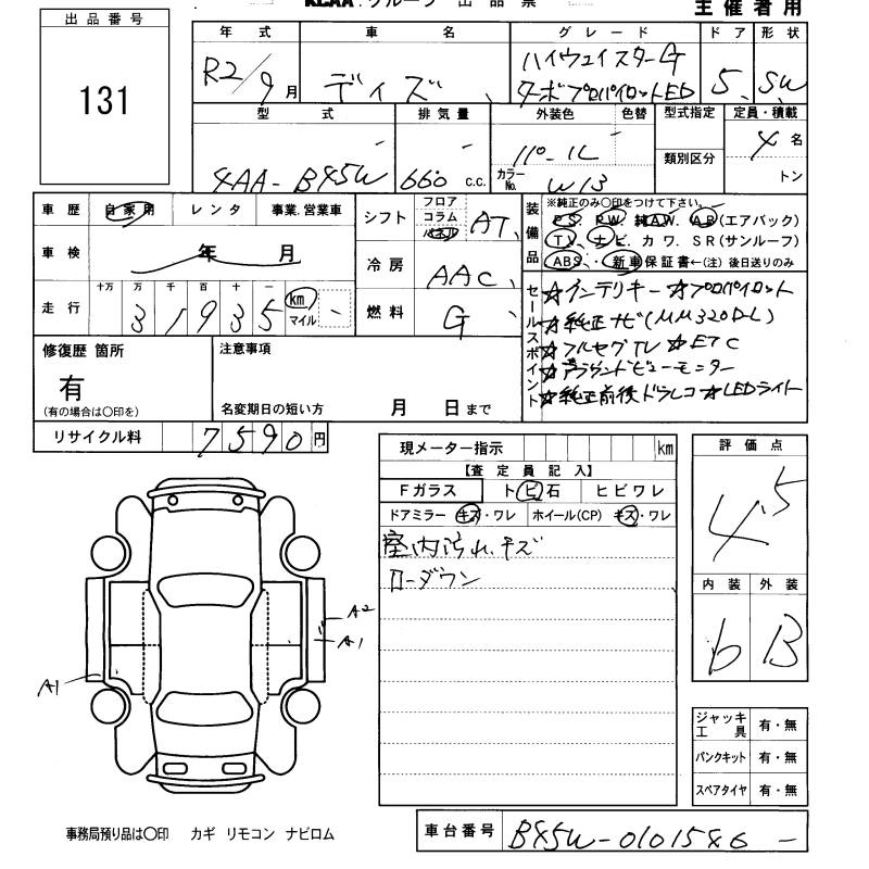 NISSAN DAYZ 2020 г., лот № 131