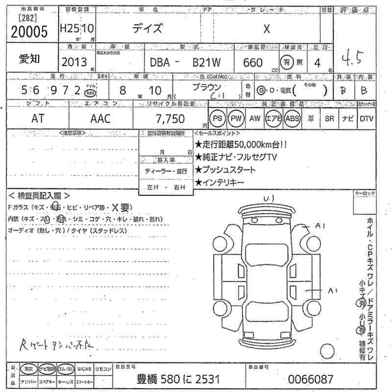 NISSAN DAYZ 2013 г., лот № 20005