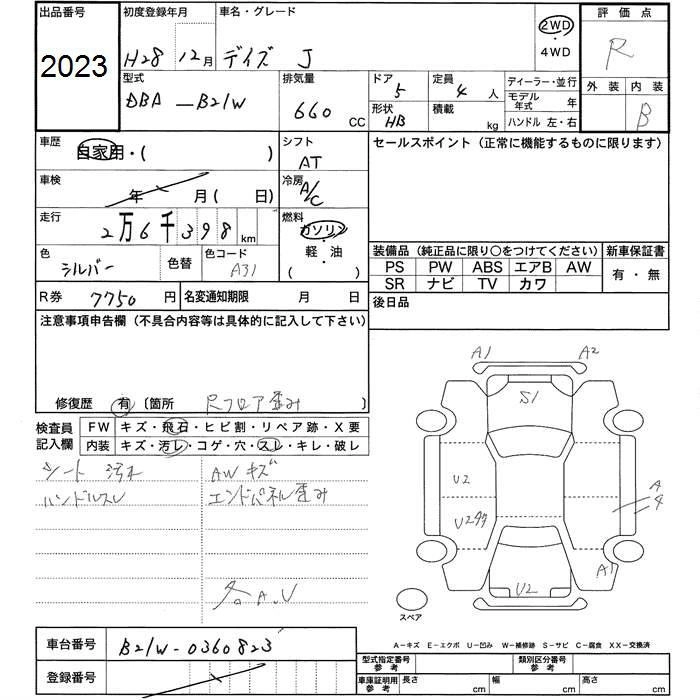 NISSAN DAYZ 2016 г., лот № 2023