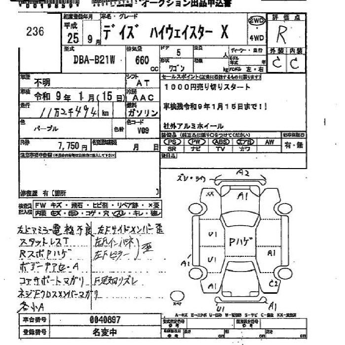 Стартовая цена авто на аукционе 1 000 ¥