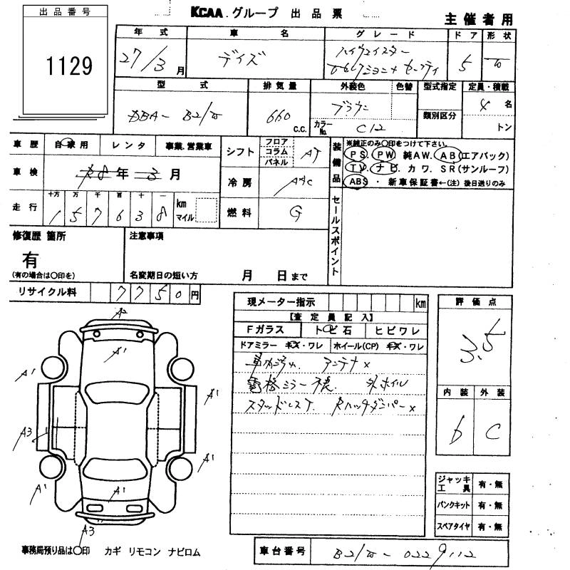 NISSAN DAYZ 2015 г., лот № 1129