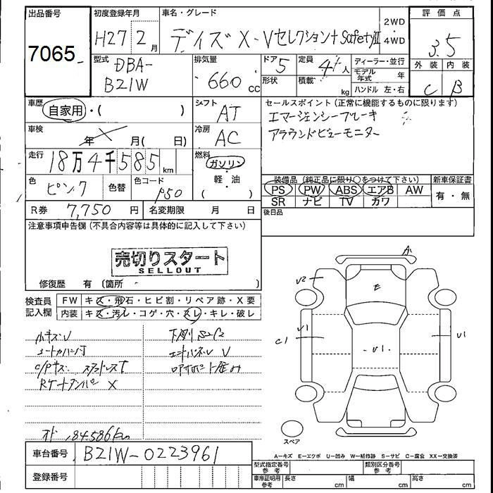 NISSAN DAYZ 2015 г., лот № 7065