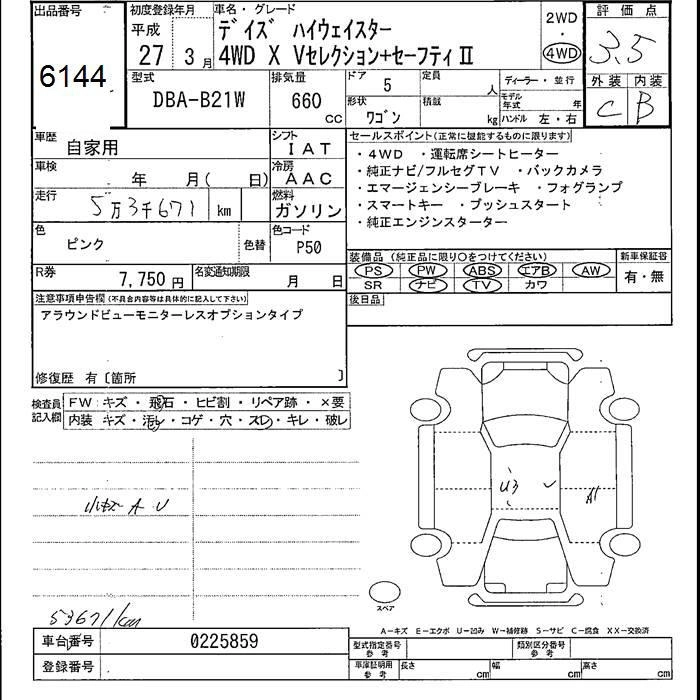 Год выпуска2015 Пробег 54 000 км КузовB21W Комплектация4WD X V SELECTION + SAFETY II