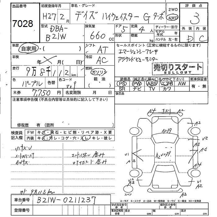 NISSAN DAYZ 2015 г., лот № 7028