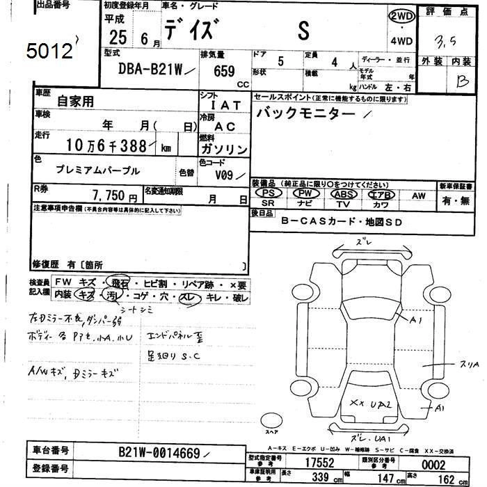 NISSAN DAYZ 2013 г., лот № 5012