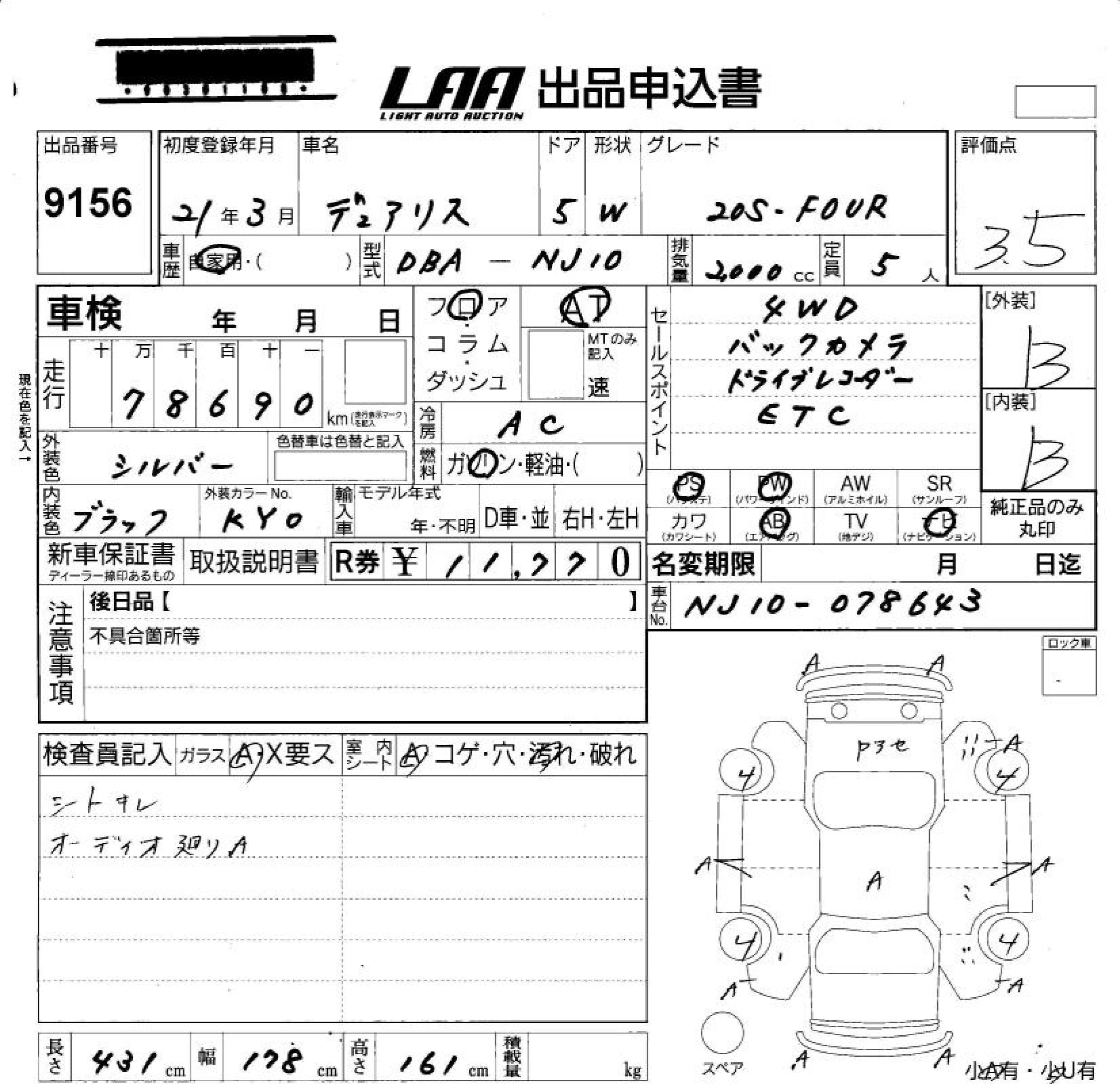 Статус выставлен на аукцион Лот 9156 Аукцион LAA Okayama Дата аукциона 12.12.2025