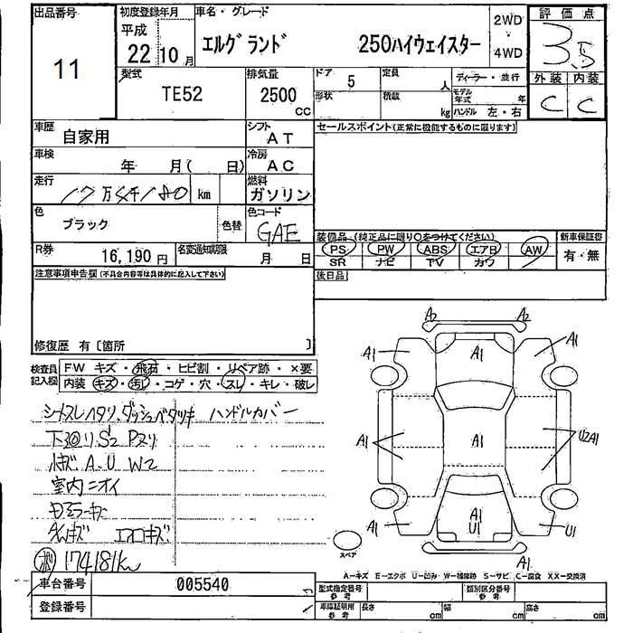 Год выпуска2010 Пробег 174 000 км КузовTE52 Комплектация250 HIGHWAY STAR