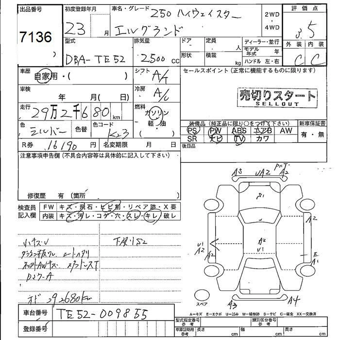 NISSAN ELGRAND 2011 г., лот № 7136